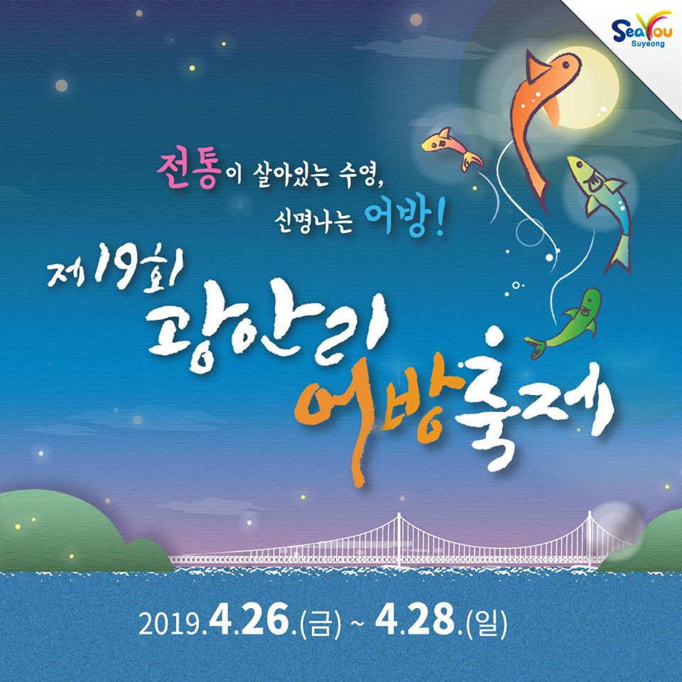 õÇýÀÇ ÀÚ¿¬È¯°æÀ» °®Ãá ±¤¾È¸®Çؼö¿åÀå¿¡¼­ ¾Æ¸§´Ù¿î ±¤¾È´ë±³¸¦ ¹è°æÀ¸·Î ¡®Á¼ö¿µ ¾î¹æ³îÀÌ¡¯¿Í °°Àº ¼ö¿µÁö¹æÀÇ ÀüÅë¹Î¼ÓÀ» ÁÖÁ¦·Î ÆîÃÄÁö´Â ºÎ»êÀ¯ÀÏ 2019³â ¹®È­Ã¼À°°ü±¤ºÎ ¼±Á¤ À°¼ºÃàÁ¦ ¡¸Á¦19ȸ ±¤¾È¸®¾î¹æÃàÁ¦¡¹¿¡ ¿©·¯ºÐÀ» ÃÊ´ëÇÕ´Ï´Ù.
